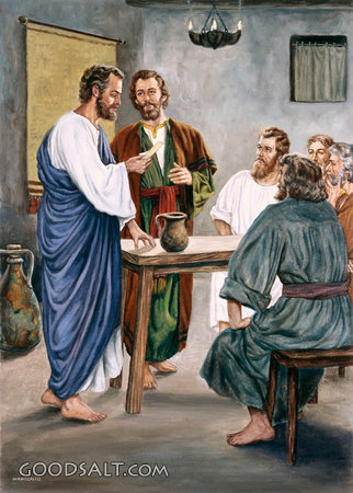 Last Supper John 20:19 christ, Jesus, passover, bread, wine, last supper, jesus christ, jesus with disciples, jesus breaking bread, passover feast, upper room, pacific press publishing PROJECTION - License for PowerPoint™ PRINT – buy a print of this picture; optional frame Bible Hub |