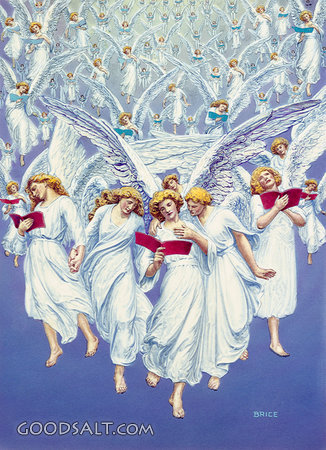 Angel's Rejoicing Luke 2:13-14 bible, worship, angels, angelic choir, brice norman, angel choir, heavenly choir, angels singing, angels rejoicing, angel's descending, angel's praise god, white tunics, hymnal, pacific press publishing PROJECTION - License for PowerPoint™ PRINT – buy a print of this picture; optional frame Bible Hub |