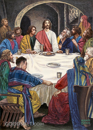 Last Supper 1 Corinthians 11:23-28 christ, Jesus, communion, bread, wine, jesus christ, jesus with disciples, upper room, brice norman, the last supper, jesus prays to father, bread and wine, daily bread, pacific press publishing PROJECTION - License for PowerPoint™ PRINT – buy a print of this picture; optional frame Bible Hub |