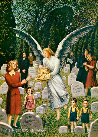 Second Coming Romans 8:11 1 Corinthians 15:35 1 Corinthians 15:42 1 Corinthians 15:52 Hebrews 11:35 cemetery, resurrection, angels, second coming, brice norman, mother and child, mother and children, dead in christ, angel holds baby, christ's second coming, pacific press publishing PROJECTION - License for PowerPoint™ PRINT – buy a print of this picture; optional frame Bible Hub |