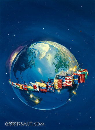earth, world, universal, planet, unity, flags, nations, john steel, global, pacific press publishing, js-0117