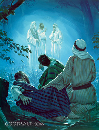 The Transfiguration Matthew 17:1-3 Mark 9:2-5 Luke 9:28-34 christ, Jesus, transfiguration, elijah, john, peter, moses, mount, james, john steel, pacific press publishing, js-0344 PROJECTION - License for PowerPoint™ PRINT – buy a print of this picture; optional frame Bible Hub |