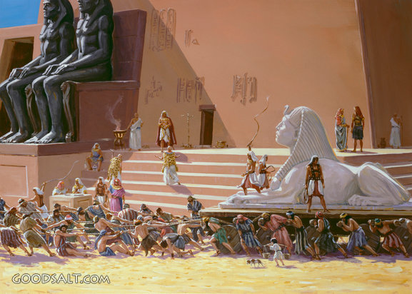 Slaves in Egypt Exodus 1:11 bondage, taskmaster, egypt, slavery, slave, egyptian, slaves, taskmasters, john steel, Sphinx, pacific press publishing, js-0406 PROJECTION - License for PowerPoint™ PRINT – buy a print of this picture; optional frame Bible Hub |
