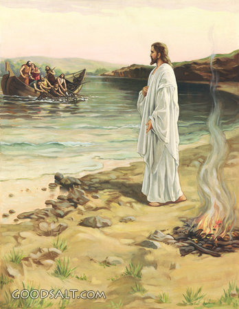 The Risen Christ and His Disciples John 21:1-22 risen, christ, Jesus, testament, new, galilee, resurrection, disciples, Appearances, William Fredericks, 00039 PROJECTION - License for PowerPoint™ PRINT – buy a print of this picture; optional frame Bible Hub |