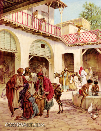 Joseph's Brethren at the Inn Genesis 44 testament, law, inn, man, old, joseph, money, brethren, sack, genesis, brothers, Deuteronomy, William Brassey Hole, Tests, 00150 PROJECTION - License for PowerPoint™ PRINT – buy a print of this picture; optional frame Bible Hub |