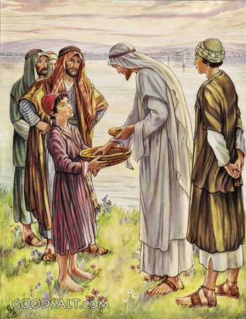 Jesus About to Feed the Multitude Matthew 14:14-21 Mark 6:33-44 Luke 9:12-17 John 6:3-14 Jesus, feed, testament, new, multitude, miracles, feeds, Cicely Mary Barker, 00183 PROJECTION - License for PowerPoint™ PRINT – buy a print of this picture; optional frame Bible Hub |