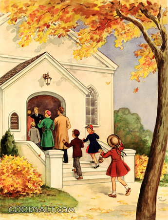 away, autumn, going, church, home, winter, entering, family, americana, Kay Draper, 00288