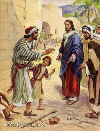 Christ and Blind Bartimaeus Matthew 20:29-34 Mark 10:46-52 Luke 18:35-43 blind, christ, Jesus, testament, new, Bartimaeus, Healings, H. Willard Ortlip, 00460 PROJECTION - License for PowerPoint™ PRINT – buy a print of this picture; optional frame Bible Hub |
