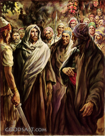 Jesus Taken Prisoner Matthew 26:47-56 Mark 14:43-52 Luke 22:47-53 John 18:1-12 week, Jesus, testament, arrested, taken, new, garden, prisoner, easter, passion, Henry Coller, Scourged, 00587 PROJECTION - License for PowerPoint™ PRINT – buy a print of this picture; optional frame Bible Hub |