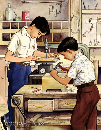 two, working, americana, children, boys, workshop, Dorothy Handsaker-Scott, Indoors, 00612
