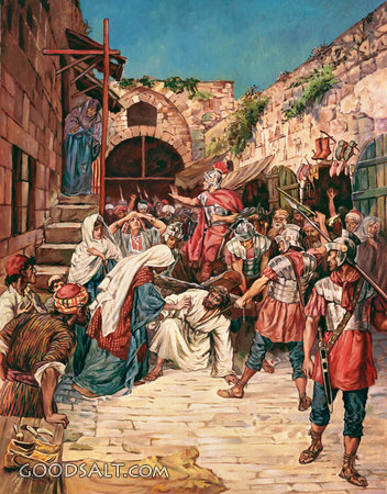 Jesus Bids the Women to Weep not for Him Matthew 27:32 Mark 15:21 Luke 23:26-32 week, Jesus, testament, women, new, cross, weep, easter, passion, crucifixion, carries, William Brassey Hole, Bids, 00816 PROJECTION - License for PowerPoint™ PRINT – buy a print of this picture; optional frame Bible Hub |