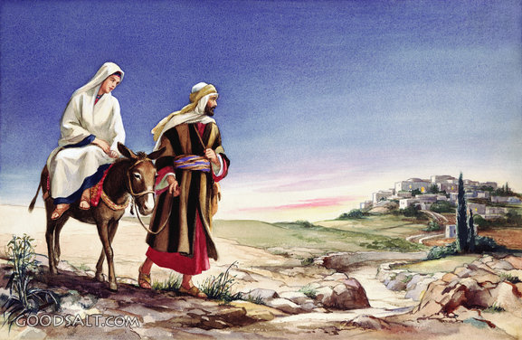 Mary and Joseph on Way to Bethlehem Luke 2:1-7 way, travel, Jesus, birth, testament, early, joseph, mary, life, ministry, new, bethlehem, events, Dorothy Handsaker-Scott, Pre, 00833 PROJECTION - License for PowerPoint™ PRINT – buy a print of this picture; optional frame Bible Hub |