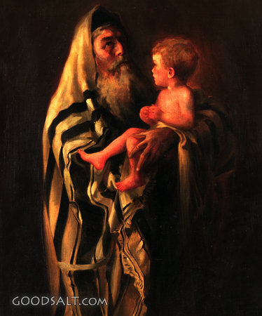 Simeon and the Christ Child Luke 2:21-38 christ, Jesus, birth, testament, anna, early, child, life, ministry, temple, new, simeon, Marion B. Allen, 00930 PROJECTION - License for PowerPoint™ PRINT – buy a print of this picture; optional frame Bible Hub |
