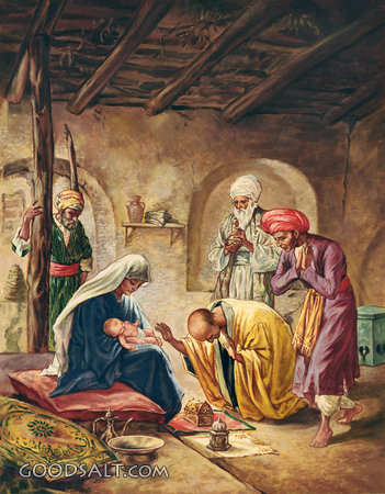 Wise Men Worship the Child, Presenting Him with Gifts Matthew 2:1-12 Jesus, birth, testament, early, child, men, life, ministry, worship, new, wise, visit, presenting, gifts, William Brassey Hole, 00979 PROJECTION - License for PowerPoint™ PRINT – buy a print of this picture; optional frame Bible Hub |