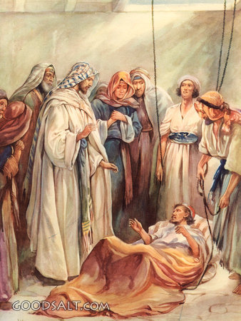 Man Let Down Through Roof Matthew 9:1-8 Mark 2:1-12 Luke 5:17-26 Jesus, paralyzed, testament, crippled, man, new, roof, Healings, E. S. Hardy, Let, 00994 PROJECTION - License for PowerPoint™ PRINT – buy a print of this picture; optional frame Bible Hub |