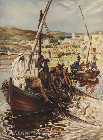 A Great Multitude of Fish is Enclosed Luke 5:1-11 Jesus, testament, catch, enclosed, great, new, multitude, fish, miracles, Provides, William Brassey Hole, 01007 PROJECTION - License for PowerPoint™ PRINT – buy a print of this picture; optional frame Bible Hub |