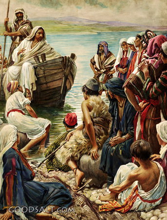 Christ Preaching from a Boat Matthew 13:1-2 Luke 5:1-11 water, christ, Jesus, testament, preaching, boat, new, galilee, Harold Copping, Teachings, 01043 PROJECTION - License for PowerPoint™ PRINT – buy a print of this picture; optional frame Bible Hub |