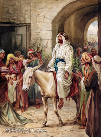Triumphal Entry Matthew 21:1-11 Mark 11:1-11 Luke 19:28-44 John 12:12-19 week, Jesus, entry, testament, jerusalem, new, triumphal, easter, passion, E. S. Hardy, Enters, 01049 PROJECTION - License for PowerPoint™ PRINT – buy a print of this picture; optional frame Bible Hub |