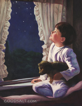 bedtime, looking, boy, americana, children, stars, Indoors, Mary Wireman Remington, 01090