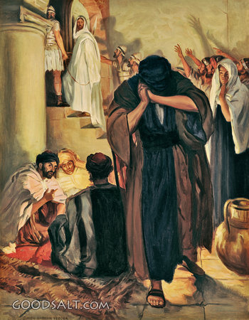 Peter's Denial Matthew 26:69-75 Mark 14:66-72 Luke 22:54-62 John 18:15-18 John 18:25-27 christ, Jesus, testament, denial, denies, peter, new, simon, disciples, Simon H. Vedder, 01092 PROJECTION - License for PowerPoint™ PRINT – buy a print of this picture; optional frame Bible Hub |