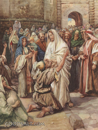 Jesus Helping a Blind Man Matthew 12:22-37 Mark 3:20-30 Luke 11:14-28 Matthew 9:32-34 Matthew 20:29-34 Mark 10:46-52 Luke 18:35-43 blind, people, helping, Jesus, testament, man, new, miracles, Bartimaeus, Healings, R. Payton Reid, 01145 PROJECTION - License for PowerPoint™ PRINT – buy a print of this picture; optional frame Bible Hub |