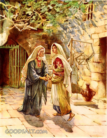 Mary Salutes Elizabeth Luke 1:39-56 Jesus, birth, testament, early, mary, life, ministry, new, extra, elizabeth, events, William Brassey Hole, Pre, Salutes, 01255 PROJECTION - License for PowerPoint™ PRINT – buy a print of this picture; optional frame Bible Hub |