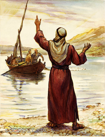 Jesus Calling Peter and Andrew Matthew 4:18-22 Mark 1:16-20 John 1:35-42 follow, calling, Jesus, testament, peter, new, andrew, disciples, Dorothy Handsaker-Scott, Calls, 01259 PROJECTION - License for PowerPoint™ PRINT – buy a print of this picture; optional frame Bible Hub |