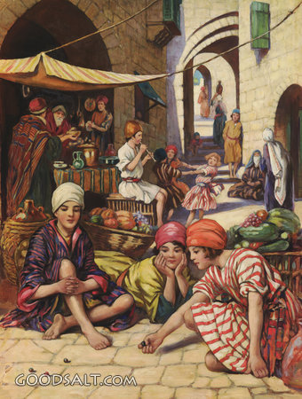 The Market Place Luke 7:32 city, play, playing, bible, life, place, market, flute, children, boys, times, marketplace, marbles, Maud T. Atkinson, 01282 PROJECTION - License for PowerPoint™ PRINT – buy a print of this picture; optional frame Bible Hub |