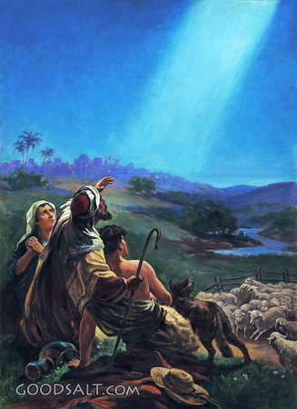 Announcement to the Shepherds Luke 2:8-20 angel, Jesus, birth, testament, early, life, ministry, new, announcement, shepherds, Bernhard Plockhorst, 01334 PROJECTION - License for PowerPoint™ PRINT – buy a print of this picture; optional frame Bible Hub |
