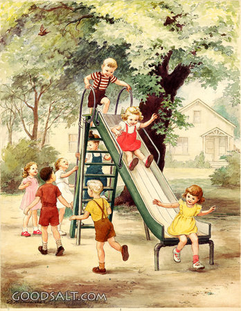 playing, slide, playground, americana, children, outdoors, Dorothy Handsaker-Scott, 01412