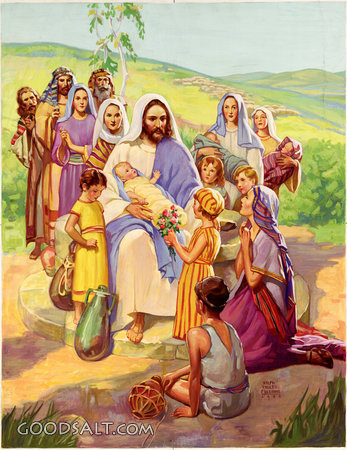 Christ Blessing the Children Matthew 19:13-15 Mark 10:13-16 Luke 18:15-17 christ, Jesus, testament, blessing, new, children, disciples, friends, Ralph Pallen Coleman, 01575 PROJECTION - License for PowerPoint™ PRINT – buy a print of this picture; optional frame Bible Hub |