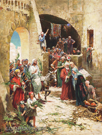 Triumphal Entry Matthew 21:1-11 Mark 11:1-11 Luke 19:28-44 John 12:12-19 week, Jesus, entry, testament, jerusalem, new, triumphal, easter, passion, Enters, Domenico Mastroianni, 01617 PROJECTION - License for PowerPoint™ PRINT – buy a print of this picture; optional frame Bible Hub |