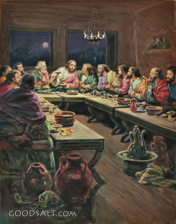 Last Supper Matthew 26:26-29 Mark 14:22-25 Luke 22:17-20 1 Corinthians 11:23-26 week, Jesus, testament, new, bread, wine, easter, passion, supper, disciples, Shares, Blesses, William Fredericks, 01655 PROJECTION - License for PowerPoint™ PRINT – buy a print of this picture; optional frame Bible Hub |
