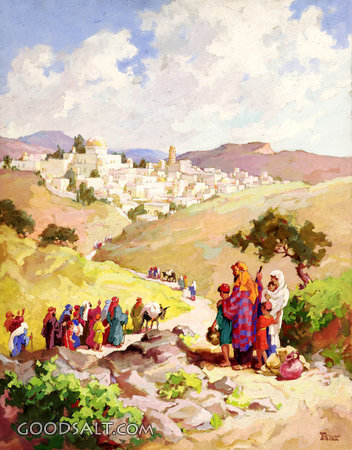 Pilgrims on Way to Temple Psalm 91 Psalm 121 way, city, travel, landscape, bible, pilgrimage, temple, jerusalem, times, pilgrims, Backgrounds, Gertrude Kay, 01796A PROJECTION - License for PowerPoint™ PRINT – buy a print of this picture; optional frame Bible Hub |