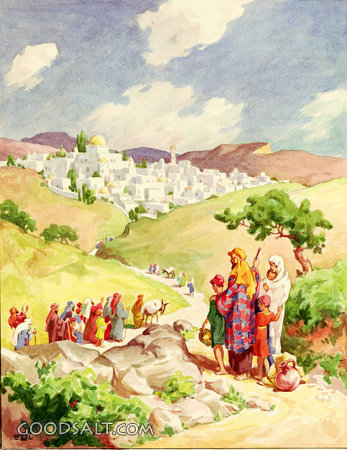 Pilgrims on Way to Temple Psalm 91 Psalm 121 way, city, travel, landscape, bible, pilgrimage, temple, jerusalem, times, pilgrims, Backgrounds, Gertrude Kay, 01796B PROJECTION - License for PowerPoint™ PRINT – buy a print of this picture; optional frame Bible Hub |