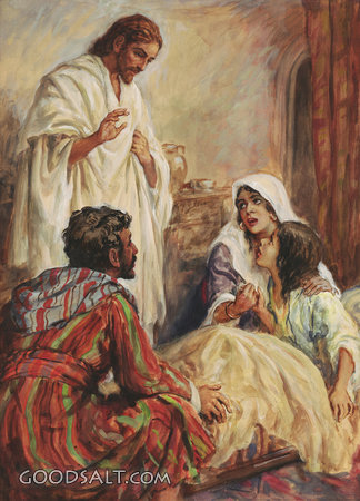 Jesus Healing a Sick Child Matthew 9:18-26 Mark 5:21-43 Luke 8:40-56 Jesus, healing, sick, testament, year, child, new, jairus, daughter, heals, Henry Coller, chronological, Popularity, Grows, 02028 PROJECTION - License for PowerPoint™ PRINT – buy a print of this picture; optional frame Bible Hub |