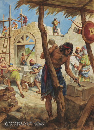 Rebuilding Wall of Jerusalem Nehemiah 3 testament, captivity, old, jerusalem, return, wall, esther, nehemiah, ezra, exile, walls, Henry Coller, Rebuilding, Rebuilds, 02056 PROJECTION - License for PowerPoint™ PRINT – buy a print of this picture; optional frame Bible Hub |