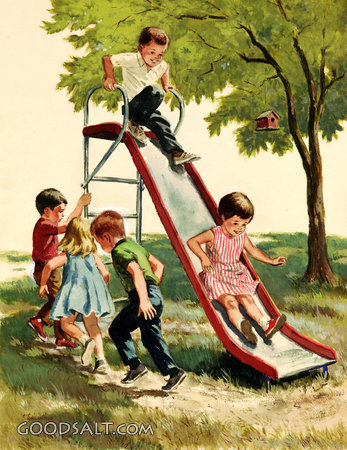 playing, slide, playground, americana, children, outdoors, William F. Timmins, 02162