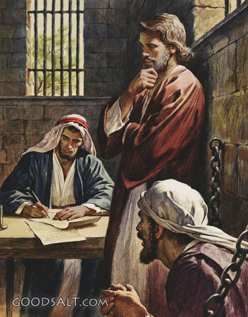 Paul Dictates a Letter Colossians 4:18 Colossians 4 testament, letter, history, new, paul, writing, prison, general, acts, Frank Soltesz, Dictates, 02253 PROJECTION - License for PowerPoint™ PRINT – buy a print of this picture; optional frame Bible Hub |