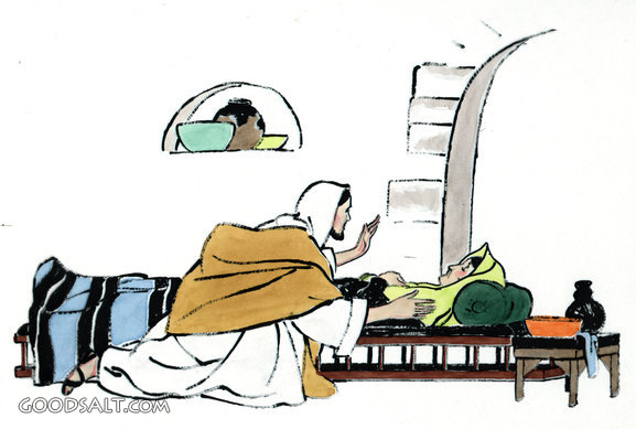 Jesus Healing Peter's Mother Matthew 8:14-17 Mark 1:29-34 Luke 4:38-41 Jesus, healing, sick, testament, law, peter, new, mother, Healings, Harry Beckhoff, 02262A PROJECTION - License for PowerPoint™ PRINT – buy a print of this picture; optional frame Bible Hub |