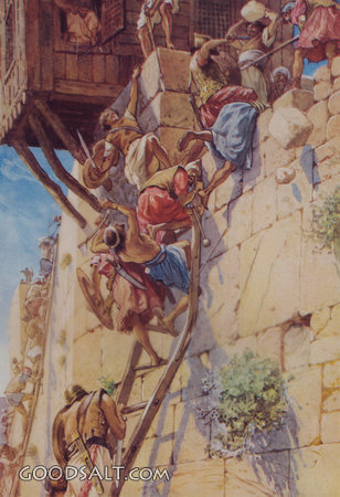 The Capture of Jerusalem from the Jebusites 2 Samuel 5 testament, old, samuel, jerusalem, kingdom, united, david, capture, kings, William Brassey Hole, Captures, Jebusites, 02446 PROJECTION - License for PowerPoint™ PRINT – buy a print of this picture; optional frame Bible Hub |