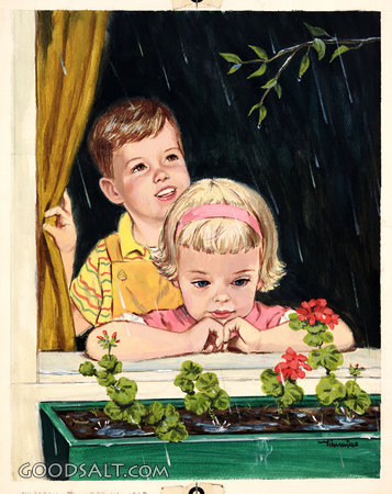 outside, looking, spring, rain, americana, children, Indoors, William F. Timmins, 02499