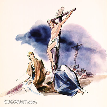 The Crucifixion John 19:26-27 calvary, golgotha, crucified, week, Jesus, testament, new, death, cross, easter, passion, crucifixion, Scourged, Allen Johnson, 02528 PROJECTION - License for PowerPoint™ PRINT – buy a print of this picture; optional frame Bible Hub |