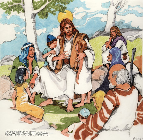 Conversation Cube: Stories in the Bible Matthew 18:1-5 Mark 9:33-37 Luke 9:46-48 Jesus, stories, testament, conversation, bible, new, children, disciples, friends, cube, Leslie Morrill, 04984D PROJECTION - License for PowerPoint™ PRINT – buy a print of this picture; optional frame Bible Hub |