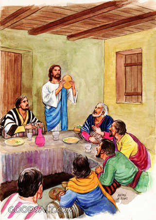 Jesus' Special Supper Matthew 26:26-29 Mark 14:22-25 Luke 22:17-20 1 Corinthians 11:23-26 week, Jesus, testament, special, passover, new, bread, wine, passion, supper, Shares, Blesses, Andre LeBlanc, 05570 PROJECTION - License for PowerPoint™ PRINT – buy a print of this picture; optional frame Bible Hub |