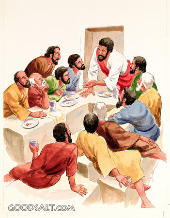Jesus Promises the Holy Spirit John 14:1-31 John 15:1-27 week, Jesus, testament, spirit, new, holy, bread, wine, passion, supper, promises, Shares, Blesses, Allen Johnson, 05651 PROJECTION - License for PowerPoint™ PRINT – buy a print of this picture; optional frame Bible Hub |