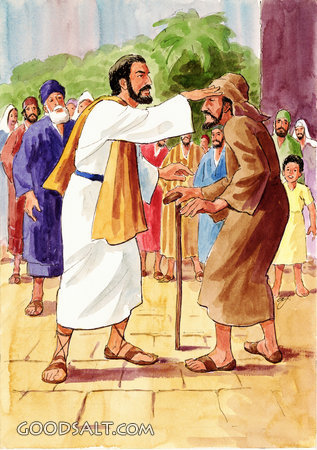 Blind Bartimaeus Matthew 20:29-34 Mark 10:46-52 Luke 18:35-43 blind, Jesus, healing, testament, bible, new, times, Bartimaeus, Pictures, Miscellany, Allen Johnson, Sequence, 05656B PROJECTION - License for PowerPoint™ PRINT – buy a print of this picture; optional frame Bible Hub |