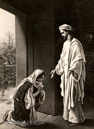 Jesus Visits Tyre and Sidon Matthew 15:21-28 Mark 7:24-30 Jesus, testament, new, possessed, demon, Tyre, Sidon, visits, Healings, William Fredericks, D00481 PROJECTION - License for PowerPoint™ PRINT – buy a print of this picture; optional frame Bible Hub |