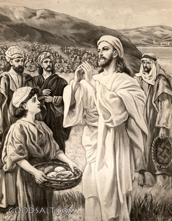 Feeding the Multitude Matthew 14:14-21 Mark 6:33-44 Luke 9:12-17 John 6:3-14 Jesus, testament, feeding, new, multitude, miracles, feeds, William Fredericks, D00528 PROJECTION - License for PowerPoint™ PRINT – buy a print of this picture; optional frame Bible Hub |