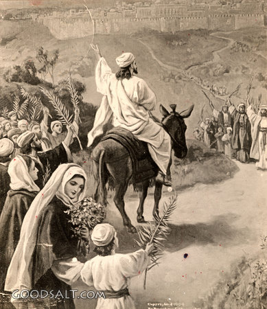 The Triumphal Entry Matthew 21:1-11 Mark 11:1-11 Luke 19:28-44 John 12:12-19 week, Jesus, entry, testament, jerusalem, new, triumphal, easter, passion, William Fredericks, Enters, D00536 PROJECTION - License for PowerPoint™ PRINT – buy a print of this picture; optional frame Bible Hub |